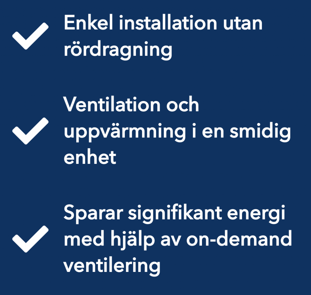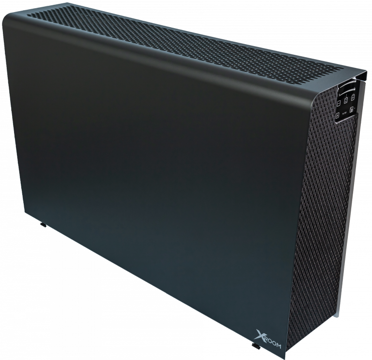 Xroom ersätter en befintlig radiator för uppvärmning av rummet. Samtidigt ventilerar enheten rummet vid behov, möjligt eftersom enheten är utrustad med en (FTX) värmeväxlare med inbyggda sensorer som känner av luft- kvaliteten i rummet.